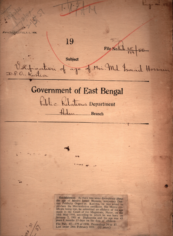 Verification of age of Mvi. Md. Ismail Hossain D.P,O,Kustia.
