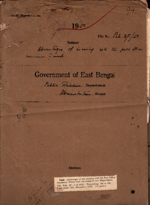 | Rack No. 18, Bundle No. 02, SI No. 131 This Department sent a duplicate copy of the file Pub-30 of 1941 to the Director of Publicity West Bengal as requested. | Rack No. 18, Bundle No. 02, SI No. 132 Verification of age of Mvi. Md. Ismail Hossain D.P,O,Kustia. | Rack No. 18, Bundle No. 02, SI No. 133 Sending of Service book of B/U Profulla Kumar Misra, Ex- clerk of D.P,O. Khulna. | Rack No. 18, Bundle No. 02, SI No. 134 Advantages of the insuring with the post office insurance fund were Circulated to this Department. | Rack No. 18, Bundle No. 02, SI No. 135 A house building advance of Rs. 1200 was sanctioned t Mvi. Aftabuddin Mia, from his General provident fund. | Rack No. 18, Bundle No. 02, SI No. 136 Transfer of Moulvi Ali Hyder Assistant operator, District Mobile Unit, Tippera. | Rack No. 18, Bundle No. 02, SI No. 137 Grant of Cycle & allowances to S.O. Pub.O. Sadar (North) Mymensingh. |