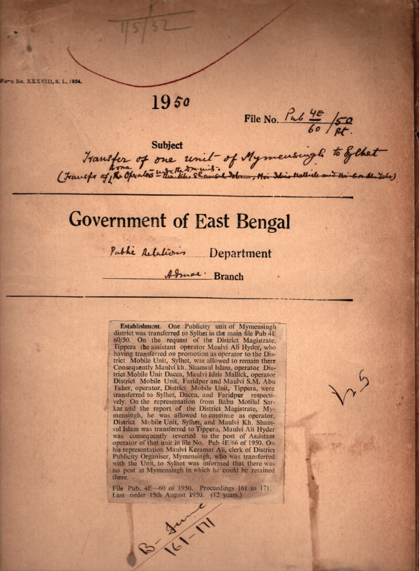 | Rack No. 18, Bundle No. 02, SI No. 133 Sending of Service book of B/U Profulla Kumar Misra, Ex- clerk of D.P,O. Khulna. | Rack No. 18, Bundle No. 02, SI No. 134 Advantages of the insuring with the post office insurance fund were Circulated to this Department. | Rack No. 18, Bundle No. 02, SI No. 135 A house building advance of Rs. 1200 was sanctioned t Mvi. Aftabuddin Mia, from his General provident fund. | Rack No. 18, Bundle No. 02, SI No. 136 Transfer of Moulvi Ali Hyder Assistant operator, District Mobile Unit, Tippera. | Rack No. 18, Bundle No. 02, SI No. 137 Grant of Cycle & allowances to S.O. Pub.O. Sadar (North) Mymensingh. | Rack No. 18, Bundle No. 02, SI No. 138 Unauthorized absence o Babu Nripati Prosanna Biswas Clerk of D.P, O's officer Khulna. | Rack No. 18, Bundle No. 02, SI No. 139 Creation of two Publicity units in the Rajshahi Sadar Sub-division. |