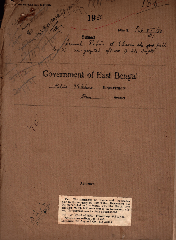 | Rack No. 18, Bundle No. 02, SI No. 139 Creation of two Publicity units in the Rajshahi Sadar Sub-division. | Rack No. 18, Bundle No. 02, SI No. 140 Disciplinary action taken against the D.P,O,Khulna | Rack No. 18, Bundle No. 02, SI No. 141 Transfer of National saving certificate of the personnel opening for Pakistan from Assam. | Rack No. 18, Bundle No. 02, SI No. 142 Annual Return of salaries etc. paid by the non- gezetted officer of the Department. | Rack No. 18, Bundle No. 02, SI No. 143 Procedure for payment of interest on Provident fund balances. | Rack No. 18, Bundle No. 02, SI No. 144 Pay scale of Non-Gazetted Staff were revised under E.B.S.S. (Revision of pay) Rules 1949. | Rack No. 18, Bundle No. 02, SI No. 145 Responsibility of the Administrative Department for pushing a bill through all its stores to the final enactment. |