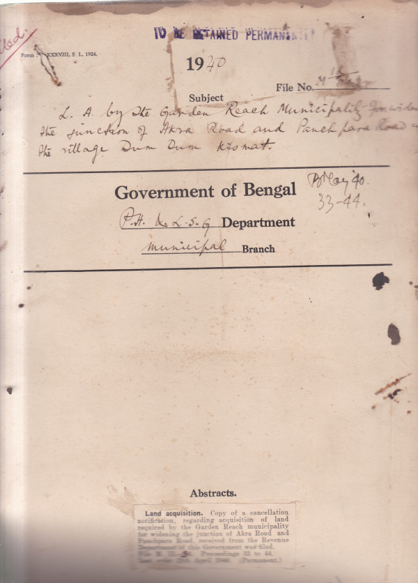 L.A. by the Garden Reach Municipality for the widening the Junction of Akra Road and Panchpara road in the village Dum Dum Kismat.