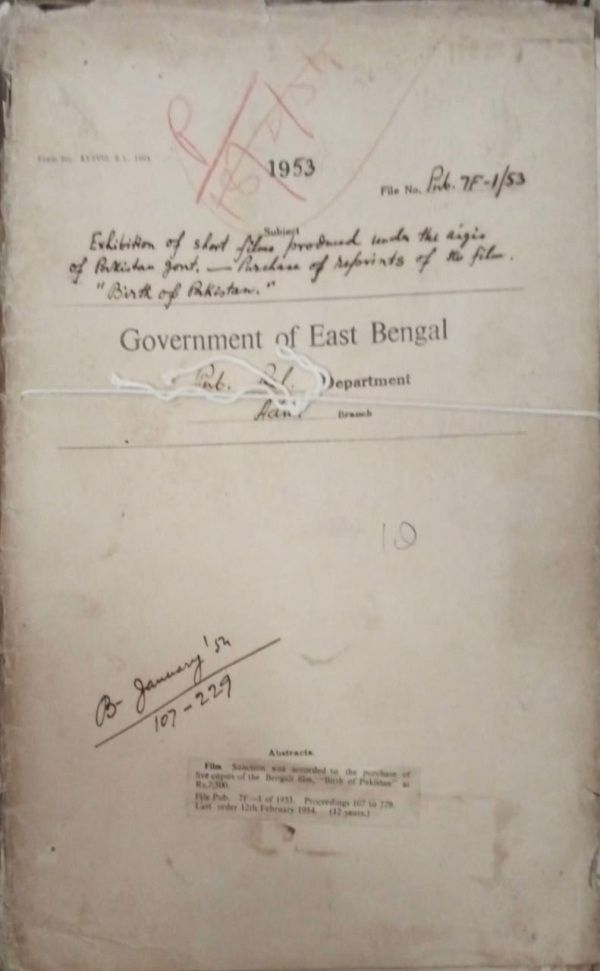 | Rack No. 18, Bundle No. 09, SI No. 623 Retention of three posts of reporters and one post of additional photographer in the P.R. Department. | Rack No. 18, Bundle No. 09, SI No. 624 Purchase of films from govt. of Pakistan. | Rack No. 18, Bundle No. 09, SI No. 625 List of officers entitled to requisition pooled Launches. | Rack No. 18, Bundle No. 09, SI No. 626 Exhibition of short films produced under the aisis of Pakistan govt. purchase of reprints of the film birth of Pakistan. | Rack No. 18, Bundle No. 09, SI No. 627 Conversion of the whole life insurance policy of Mr. Abbas Uddin Ahmed into an Endownment policy. | Rack No. 18, Bundle No. 09, SI No. 628 Purchase of return tickets by the govt. servants while travelling by paid or steamer on official business. | Rack No. 18, Bundle No. 09, SI No. 629 Appointment of Mvi. Musharraf Hossain Khan as a temporary Cleark of D.Pub.O. Rangpur. |