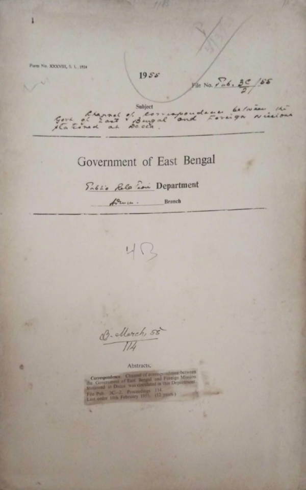 Channel Correspondence between the govt. of East Bengal and foreign mission stationed at Dacca.