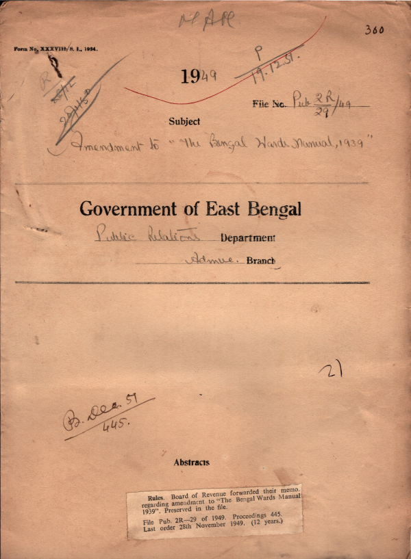 Board of Revenue forwarded their memo regarding amendment to the Bengal wards Manual 1939, Preserved in the file.
