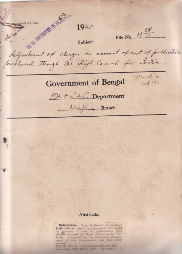 Adjustment of charges on account of cost of Publications Purchased through the High Commissioner for India.