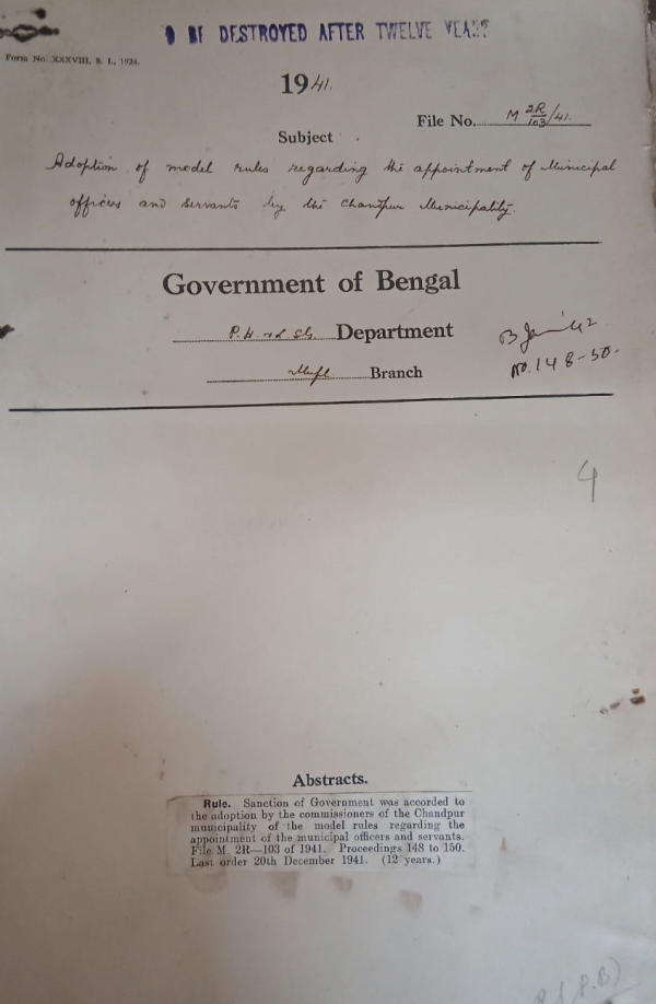 Adoption of model rules regarding the appointment of municipality officers and servants by the Chandpur Municipality.