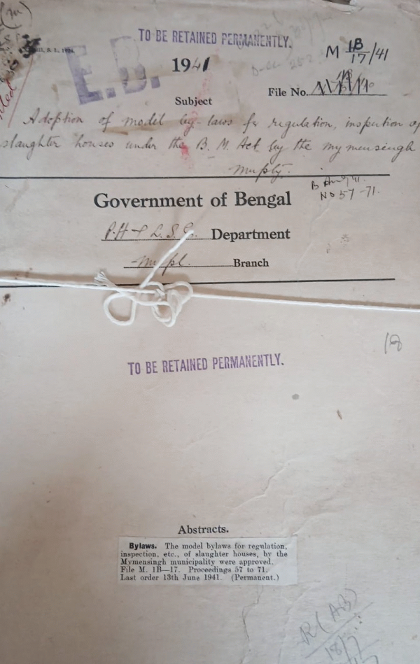 Adoption of model by-laws for regulation, Inspection of Slaughter houses under the B.M. Act by the Mymensingh Municipality.