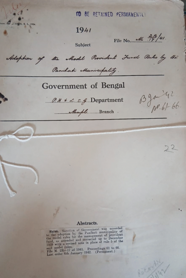 Adoption of the model provident fund Rules by the Panihati Municipality.