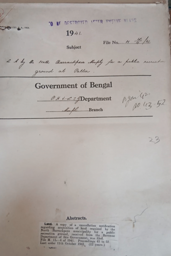 L.A. by the North Barrackpore Municipality for a Public Recreation ground at Palta.