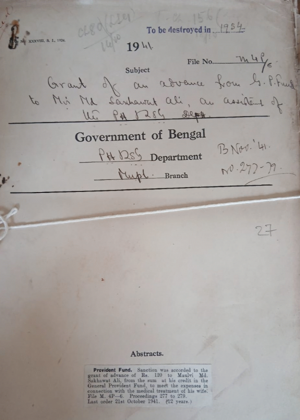 | Rack No. 13, Bundle No. 22, Sl No. 1524 Payment of Contribution by Municipality towards the expenses incurred in connection with the census for the year, 1941. | Rack No. 13, Bundle No. 22, Sl No. 1525 Supply a copy of the Govt. Publication entitled "Provisions of the Cal. Municipality Act as extended to the Municipality of Howrah". | Rack No. 13, Bundle No. 22, Sl No. 1526 Conference of Chairman of Municipality. | Rack No. 13, Bundle No. 22, Sl No. 1527 Grant of an advance from G.P. Fund to Mvi. Md. Sakhawat Ali, an assistant of the P.H. and LS.G. Department. | Rack No. 13, Bundle No. 22, Sl No. 1528 Re-imbursement of the Cost of Services actually rendered by the local bodies to Railways u/s. 135(4) of the Indial Ry. Act 1890. | Rack No. 13, Bundle No. 22, Sl No. 1529 The Bengal Municipality (Amendment) Bili, 41 by Mr. Nur Ahmed M.L.C. | Rack No. 13, Bundle No. 22, Sl No. 1530 Proposal of grauting a reward of Rs. 175/- do their ex conservancy overseer by the Ranaghat Municipality |