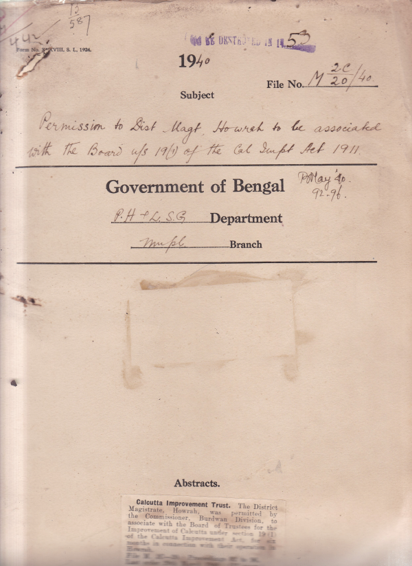 Permission to the district Magistrate Howrah to be associated with the Board u/s 19(I) of the Calcutta Imptovement Act 1911.