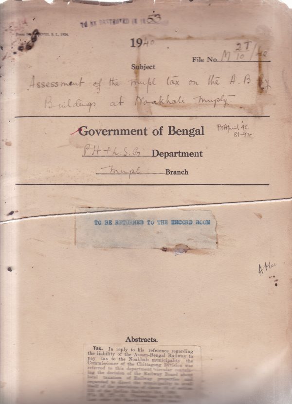 Assesment of the Municipality tax on A.B. Railway Buildings at Noakhali Muniipality.