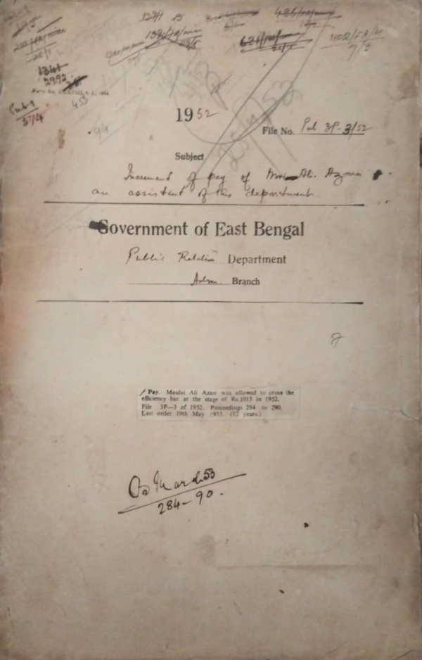 | Rack No. 18, Bundle No. 10, SI No. 648 Arragements for regarding the services book of Mvi. Jalaluddin Ahmed operator D.M. Unit, Chittagong. | Rack No. 18, Bundle No. 10, SI No. 649 Preamble of the draft, East Bengal Factories rules 1952. | Rack No. 18, Bundle No. 10, SI No. 650 Transfer of Mvi, Rafiqul Islam as a clerk of district of public organizer Rajshahi. | Rack No. 18, Bundle No. 10, SI No. 651 Increment of pay Mvi, Ali Azam an assistant of this department. | Rack No. 18, Bundle No. 10, SI No. 652 Elimination of the use of formal phrases in official correspondence. | Rack No. 18, Bundle No. 10, SI No. 653 Verification of services of Sri. Brojendra Nath Kar, Compounder of this Department. | Rack No. 18, Bundle No. 10, SI No. 654 Arrangement for placing staff car at the disposal of the Honorable Chief Minister of provinces. |