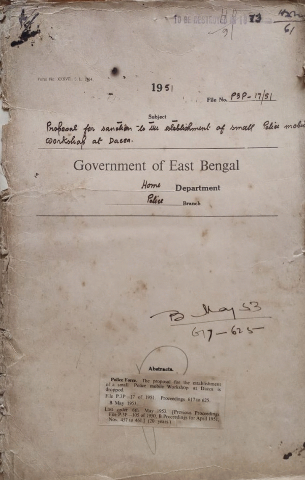 Proposal for Sanction to the establishment of small police mobile workshop at Dacca.