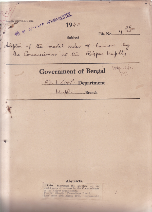Adoption of the model rules of business by the Commissioners of the Rajpur Municipality.