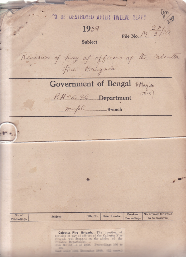 Revision of pay of officers of the Calcutta fire brigade.