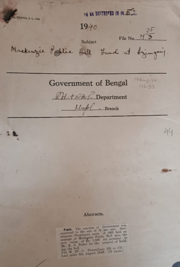 | Rack No. 13, Bundle No. 20 Sl No. 1341 L.A. by the Kandi Municipality for extension of a lane in ward No. II in the Village of Raghunathpore. | Rack No. 13, Bundle No. 20 Sl No. 1342 Representation of the Indian Chamber of Commerce on the Board of the Cal. Improvent Trust | Rack No. 13, Bundle No. 20 Sl No. 1343 Appointment of Mr. Tucker as, Chief officer, Calcutta Fire Brigade. | Rack No. 13, Bundle No. 20 Sl No. 1344 Mackenzie Public Hall Fund at Azimganj. | Rack No. 13, Bundle No. 20 Sl No. 1345 L.A. by Cal. Corporation for the extension of the Ram Krishna Vedanta Nath in ward No. 3 of the Cal. Municipality. | Rack No. 13, Bundle No. 20 Sl No. 1346 Amendments under Sub rule (1) of rule 48 of the India Electricity Rules 1937. | Rack No. 13, Bundle No. 20 Sl No. 1347 Short Notice Question by Rai Surendra Narayan Sinha Bahadur regarding the inclusion of the name of Mr J.W. Chippendale in the Electoral Roll of the General Constituency of the Cal. Corporation. |