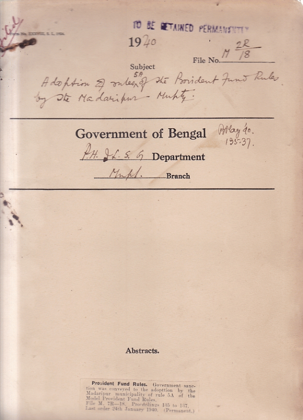 Adoption of rule 5A of the P.F. Rules by the Madaripur Municipality.