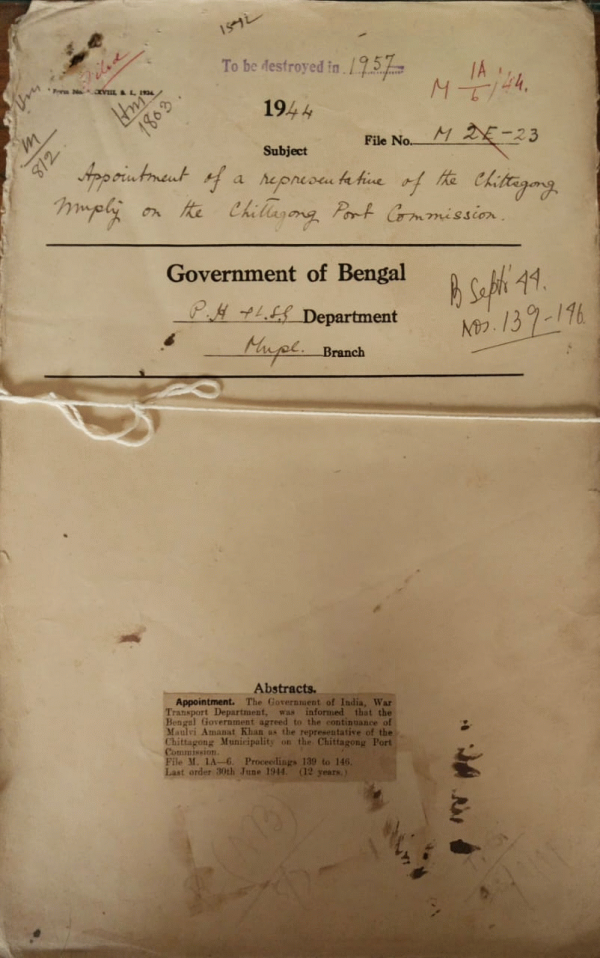 Appointment of a representative of the Chittagong Municipality on the Chillagong Post Commission.