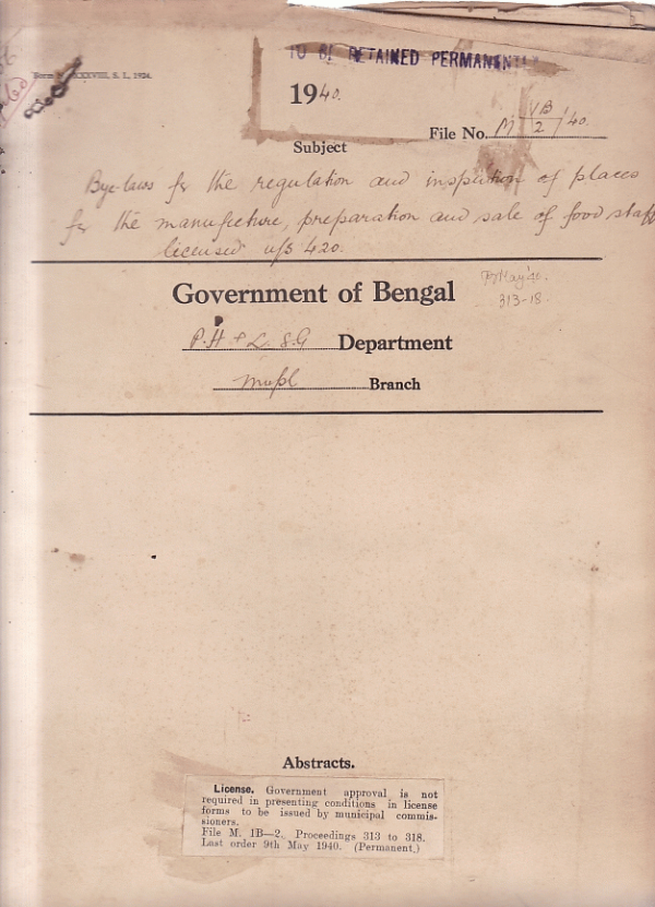 Bye-Laws for the regulation and inspection of Places for the manufacture, Preparation and Sale of food staff Licensed u/s 420.