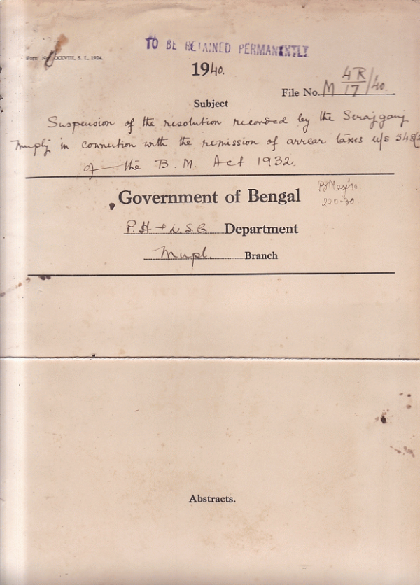 Suspension of the resolution recorded by the Serajganj Municipality in connection with the remission of arrear taxes u/s 548 (2) of the B.M. Act, 1932.