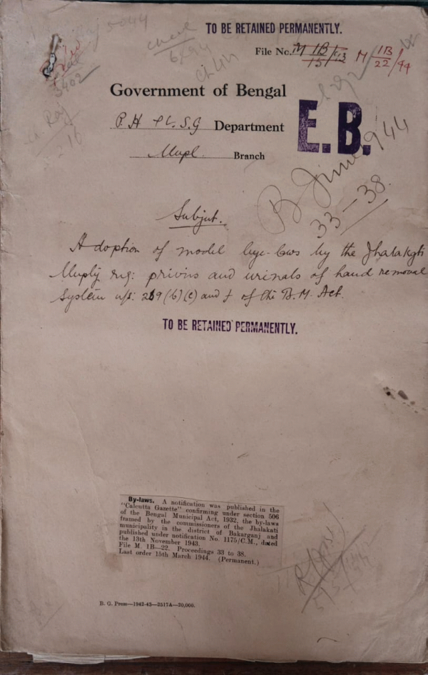 | Rack No. 13, Bundle No. 28, Sl No. 1903 Writing off of the amount of Rs. 1000-12-3 from the accounts of the Nabadwip Municipality. | Rack No. 13, Bundle No. 28, Sl No. 1904 L.A. by the Gaibandha Municipality for a Ladies Part in the village of Gobindapur. | Rack No. 13, Bundle No. 28, Sl No. 1905 Extension of the term of the Mymensingh Municipality. | Rack No. 13, Bundle No. 28, Sl No. 1906 Proposal for payment by the Dhulian of a Contribution of Rs. 30/- to the Pasteur Institute Berhampore for 1944-45. | Rack No. 13, Bundle No. 28, Sl No. 1907 Note of Audit of the Account of the Santipur Municipality for the year 1942-43. | Rack No. 13, Bundle No. 28, Sl No. 1908 Proposed revision of Seale of pay of the Municipal Engineer of the Narayanganj Municipality. | Rack No. 13, Bundle No. 28, Sl No. 1909 Resignation of the Chairman of the Pabna Municipality. |