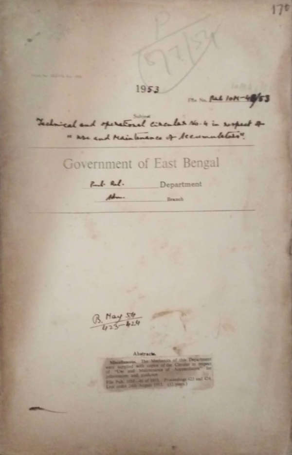| Rack No. 18, Bundle No. 10, SI No. 669 Dismissal of Gulam Hyder a temporary farash from Govt. service was noted and filed. | Rack No. 18, Bundle No. 10, SI No. 670 Suspension of lien of Mvi. Kabiluddin, a permanent L.D. Assistant. | Rack No. 18, Bundle No. 10, SI No. 671 Appointment of sub-divisional public organizer, Tangail. | Rack No. 18, Bundle No. 10, SI No. 672 Technical and operational circular No. 4 in respect of use and Maintenance of Accumulators. | Rack No. 18, Bundle No. 10, SI No. 673 Statement of stock of Furniture as stood on 30.06.53. | Rack No. 18, Bundle No. 10, SI No. 674 Verification of service of Sri Darsan Das, a peon of the public department of govt. of West Bengal. | Rack No. 18, Bundle No. 10, SI No. 675 Verification of service of Sri Haridas Mondal, L.D. Assistant Home public department govt. of West Bengal. |
