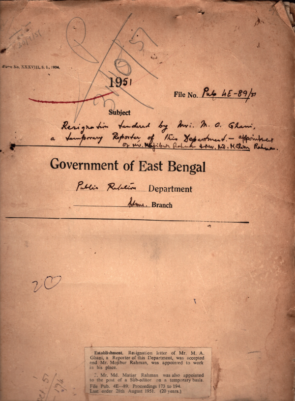 Resignation letter of Mr. M.A. Ghari a Reporter of his Department was accepted and Mr, Mojibur Rahman appointed work in his place.