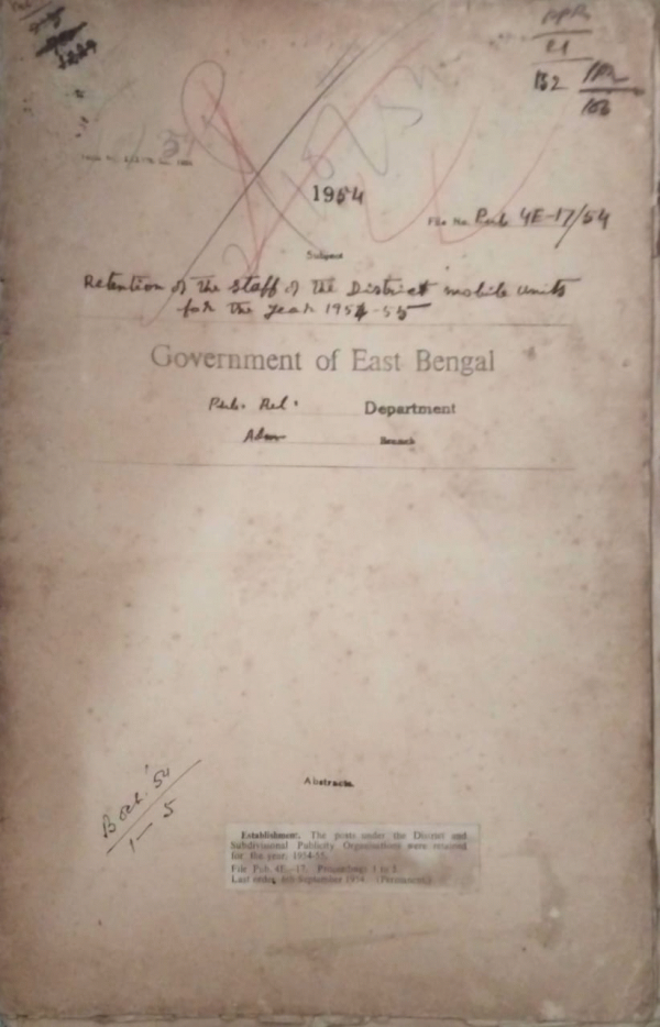 | Rack No. 18, Bundle No. 10, SI No. 679 Purchase of electrolyte for charging batteries under the community listening schemes. | Rack No. 18, Bundle No. 10, SI No. 680 Resignation tendered by Mvi. Ahmad Ali Mia, L.D. Assistant of this Department. | Rack No. 18, Bundle No. 10, SI No. 681 Amendment to the public service Commission regulations, 1937. | Rack No. 18, Bundle No. 10, SI No. 682 Retention of the staff of the District Mobile units for the year 1954-1955. | Rack No. 18, Bundle No. 10, SI No. 683 Installation of community Radio sets. | Rack No. 18, Bundle No. 10, SI No. 684 Procedure for according sanction to the govt f ordinary and special additional pension. | Rack No. 18, Bundle No. 10, SI No. 685 Conversion of policy No. 18226-C dated 2.6.38. for Rs. 3,000/- |
