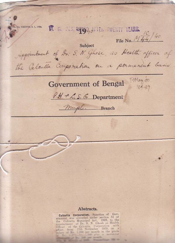 Appointmentment of Dr. S.N. Ghose as H/O of the Calcutta Corporation on a permanent Basis.