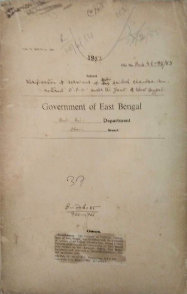Verification of service of Sri Sailesh Ch. Sen, retired D.P.O. under the govt. of West Bengal.