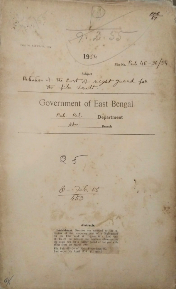| Rack No. 18, Bundle No. 11, SI No. 710 Payment of fees for fitness certificates and renewal of license of publicity van of the D.M. Unit, Mymensingh. | Rack No. 18, Bundle No. 11, SI No. 711 Complaint against Mvi. Mahbub Hossain, operator, D.M. Unit, Chittagong for misappropriation of Govt. | Rack No. 18, Bundle No. 11, SI No. 712 An addendum to the prescribed verification roll. | Rack No. 18, Bundle No. 11, SI No. 713 Retention of the post of Night Guard for the film vault. | Rack No. 18, Bundle No. 11, SI No. 714 Development schemes of the public relation Department. | Rack No. 18, Bundle No. 11, SI No. 715 Copy of the pamphlet entitle how to audit secretariat files for the press. | Rack No. 18, Bundle No. 11, SI No. 716 Resignation tendered by Mvi. Abul Hossain L.D. Assistant of this Department. |