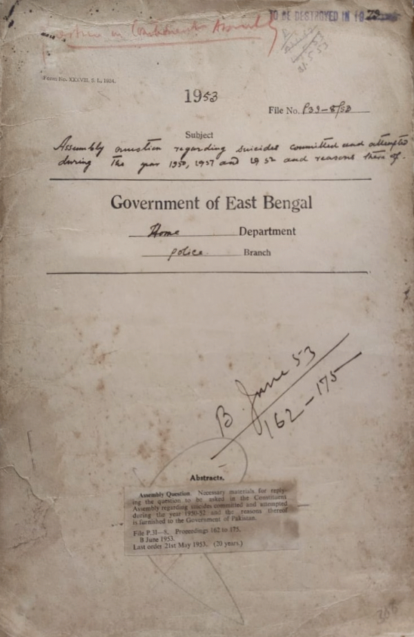 Assembly question regarding suicides committed and attempted during the year 1950, 1951 & 1952 and reason there of.