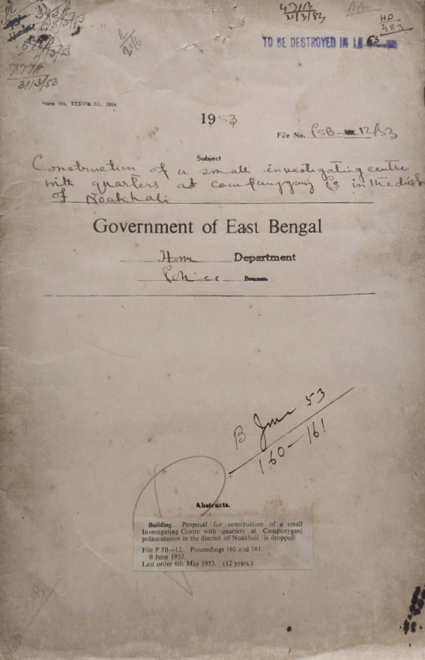 Construction of a small investigating Centre with quarters at Companyganj P.S. in the district of Noakhali.