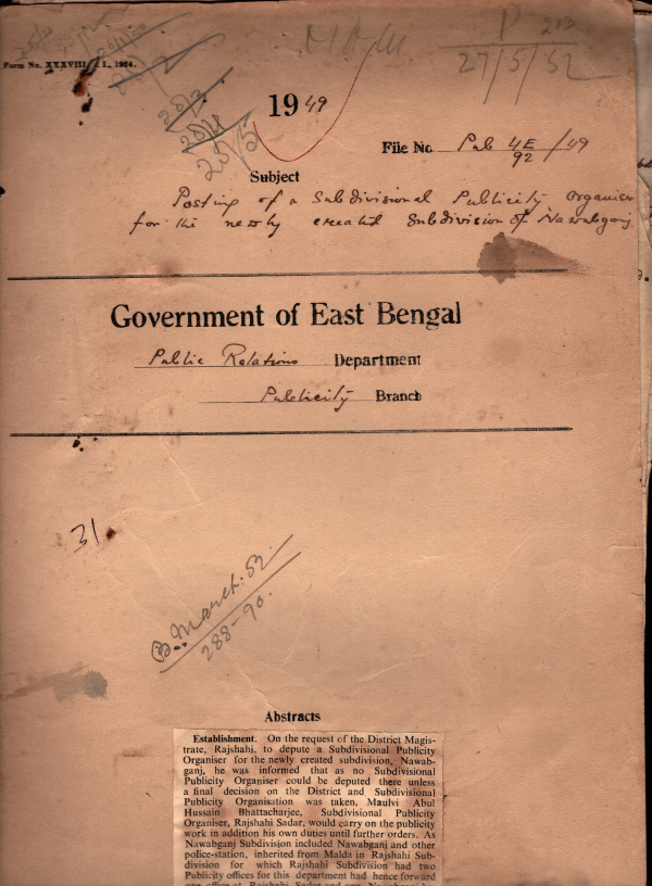 Posting of Sub-divisional Publicity organizer for the newly created Sub- division of Newabganj.