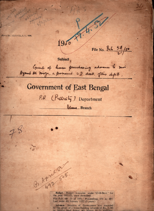 | Rack No. 18, Bundle No. 04, SI No. 237 Re- presentation from Mvi. Mansur Ali, a record supplier of this Department for Confirmation. | Rack No. 18, Bundle No. 04, SI No. 238 Posting of Sub-divisional Publicity organizer for the newly created Sub- division of Newabganj. | Rack No. 18, Bundle No. 04, SI No. 239 Dismissal of Mvi. Shadat Hussain Khondokar from service and debarred from future employment under goverment. | Rack No. 18, Bundle No. 04, SI No. 240 House building advance of Mvi. Syed Azmal Ali Meerza a Permanent U.D. Assistant of the Public relation. | Rack No. 18, Bundle No. 04, SI No. 241 Grant of earned leave to Mr. A. H. Syed Sadequr Rahman, Assistant Director of Publicity. | Rack No. 18, Bundle No. 04, SI No. 242 Rules for the supply and use of Stationery Store. | Rack No. 18, Bundle No. 04, SI No. 243 Fixation of Stationary grants of the Department for this year 1950-51 |