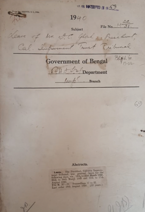Leave of Mr. D.C. Ghosh President Cal. Improvement Trust Tribunal.