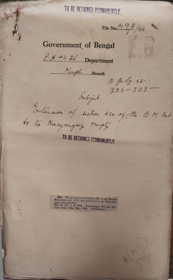 Extension of Section 420 of the B.M. Act to the Narayanganj Municipality.