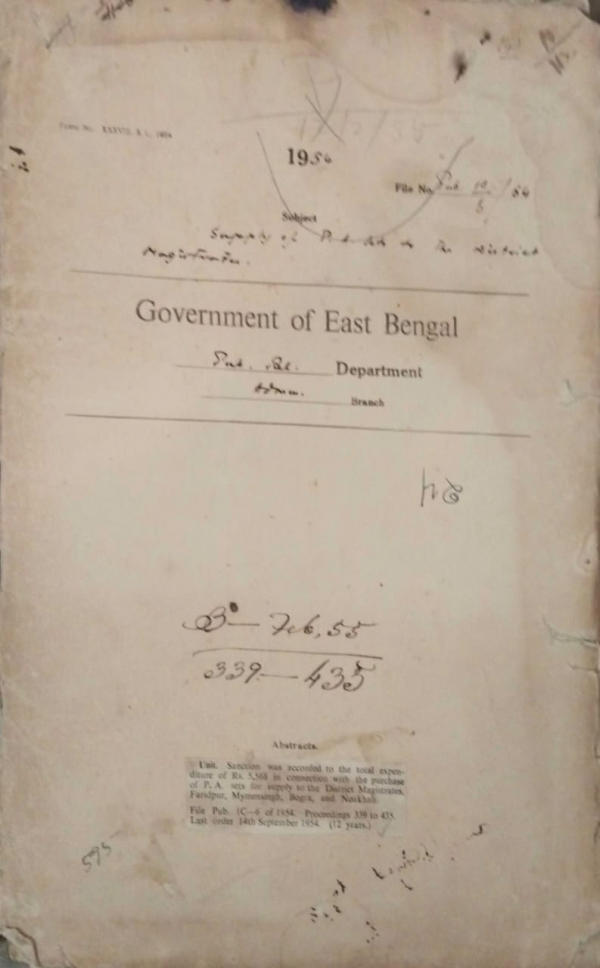 | Rack No. 18, Bundle No. 11, SI No. 726 Amendment to the rules for the Encouragement of the study of tribal languages in Bengal. | Rack No. 18, Bundle No. 11, SI No. 727 Instructions to the district Magistrate, Khulna regarding Obserbance of leave by the publicity staff. | Rack No. 18, Bundle No. 11, SI No. 728 Purchase of copies of Bengali version of the film Birth of Pakistan. | Rack No. 18, Bundle No. 11, SI No. 729 Supply of P.A. sets to the District Magistrates. | Rack No. 18, Bundle No. 11, SI No. 730 Detention of mail steamers. | Rack No. 18, Bundle No. 11, SI No. 731 Simple office Methods. | Rack No. 18, Bundle No. 11, SI No. 732 Verification of services of Mvi. Md. Motadayyan, Senior head assistant of this Department. |