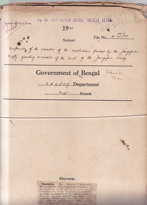 Suspension of the Execution of the resolutions passed by the Jangipur Municipality granting remission of the rent of the Jalpaiguri Ferry.