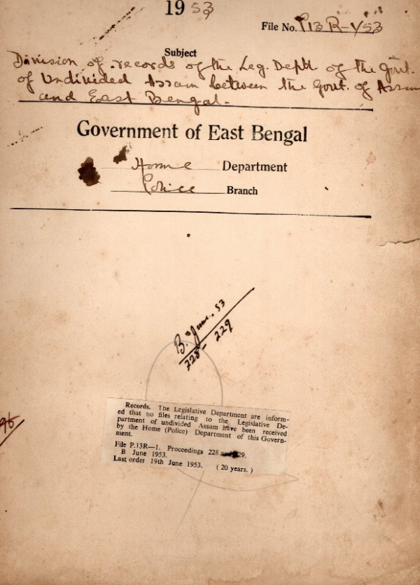Division of records of the Legislative Department of the Government of undivided Assam between the govt. of Assam and E. Bengal