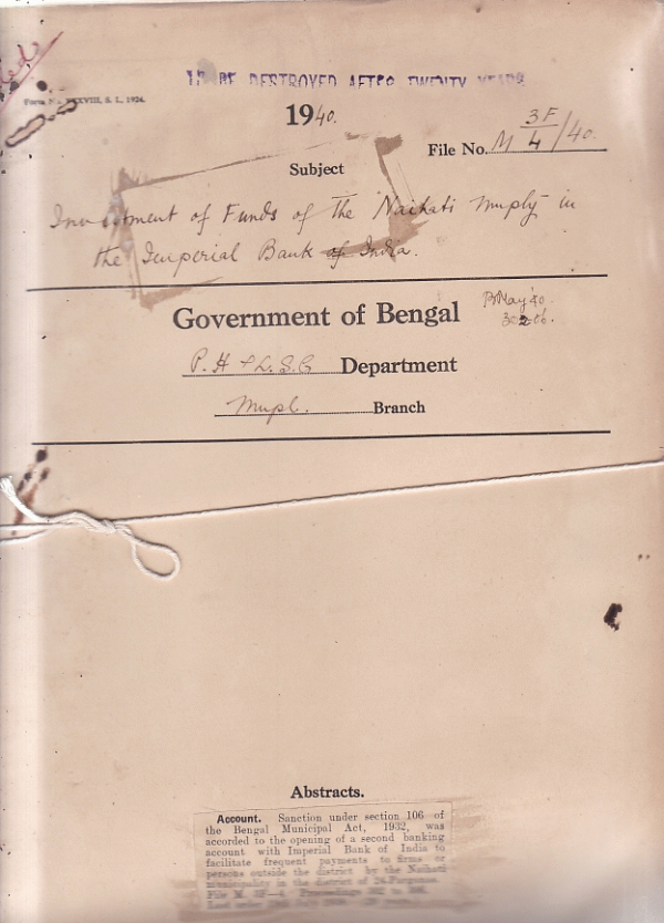 Investment of funds of the Nalhati Municipalityin the Imperial Bank of India.
