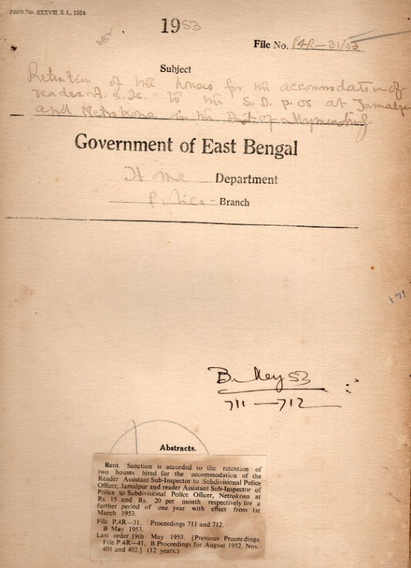 Retention of the houses hired for the accommodation of Reader A.S.Is to the S.D.P.Os at Jamalpur and Netrokona in the District of Mymensingh.