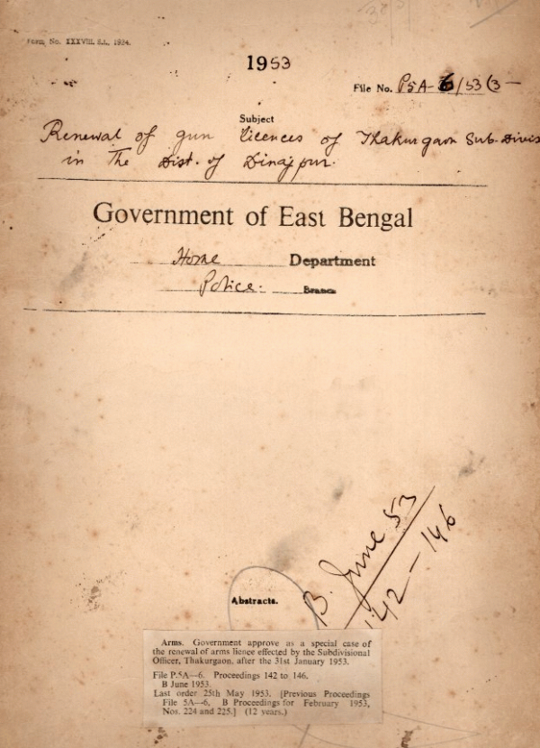 Renewal of gun licenses of Thakurgaon Sub-Divisional in the District of Dinajpur.