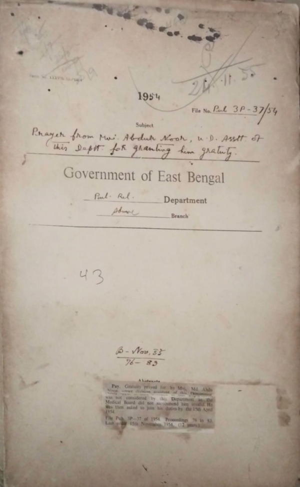 Prayer from Mvi. Md. Abdun Noor, U.D. Asstt. of this deptt. for granting him gratuity.