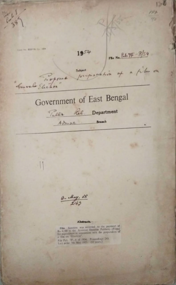| Rack No. 18, Bundle No. 12, SI No. 771 Arrangement for hire of green boats for use of the D.M. unit. | Rack No. 18, Bundle No. 12, SI No. 772 Adjustment of claims preferred by the railway administration against the provincial govt. | Rack No. 18, Bundle No. 12, SI No. 773 Grant of advance Inconnection with the preparation of a film on Election. | Rack No. 18, Bundle No. 12, SI No. 774 Proposed preparation of a film on Election. | Rack No. 18, Bundle No. 12, SI No. 775 Pay of the sweeper of the office of the D.P.O. Rangpur. | Rack No. 18, Bundle No. 12, SI No. 776 Exemption of the govt. approved films from displaying censor slides in Cinema house. | Rack No. 18, Bundle No. 12, SI No. 777 Printing of the additional copies of the films. |