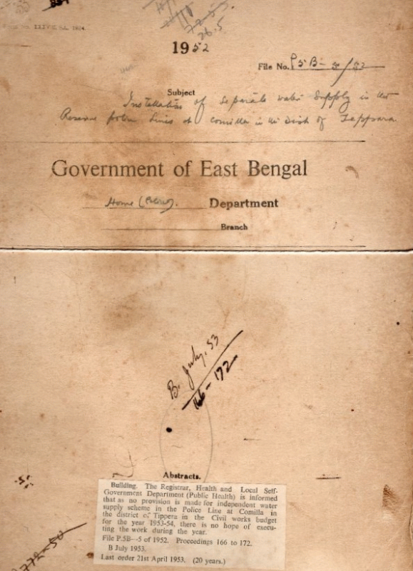 Installation of separate water supply in the P.R. Lines at Comilla in the District of Tippera.