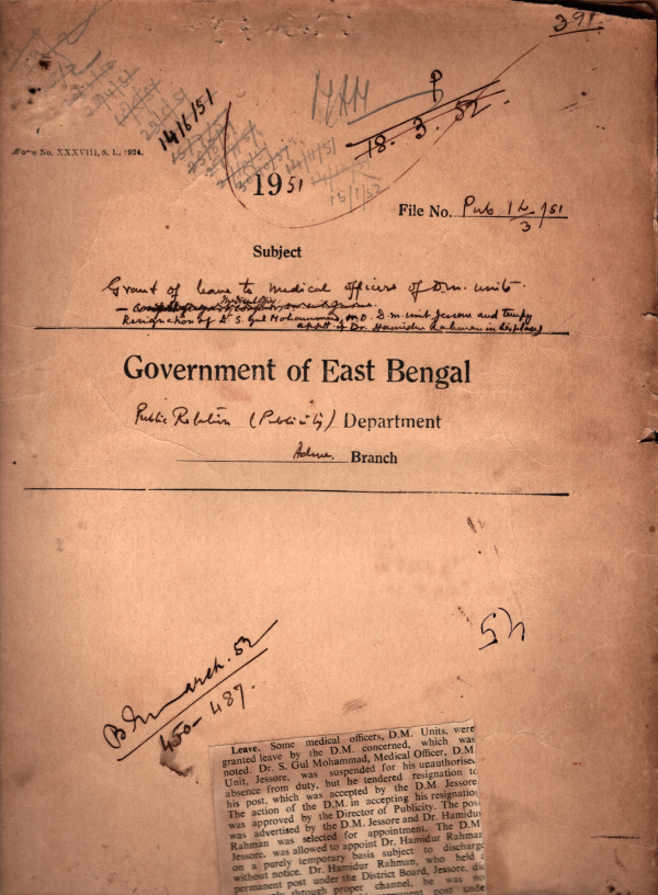 | Rack No. 18, Bundle No. 04, SI No. 294 Amendment to the Bengal Financial Rules. | Rack No. 18, Bundle No. 04, SI No. 295 Provision of Indian Arms Act entrusted to Provincial governments. | Rack No. 18, Bundle No. 04, SI No. 296 Present Addresses of the D.P.O, and S,D,Pub, Os. | Rack No. 18, Bundle No. 04, SI No. 297 Casual leave of Babu Ganesh Chandra Podder, Medical officer D,M.unit, | Rack No. 18, Bundle No. 04, SI No. 298 Information regarding the death of Mvi. Delwar Ali Choudhury D,P.O. Bogra. | Rack No. 18, Bundle No. 04, SI No. 299 Travelling Concessions to the government servants during leave. | Rack No. 18, Bundle No. 04, SI No. 300 Local Purchase of a battery for the use of D,M, Unit, Kushtia, |