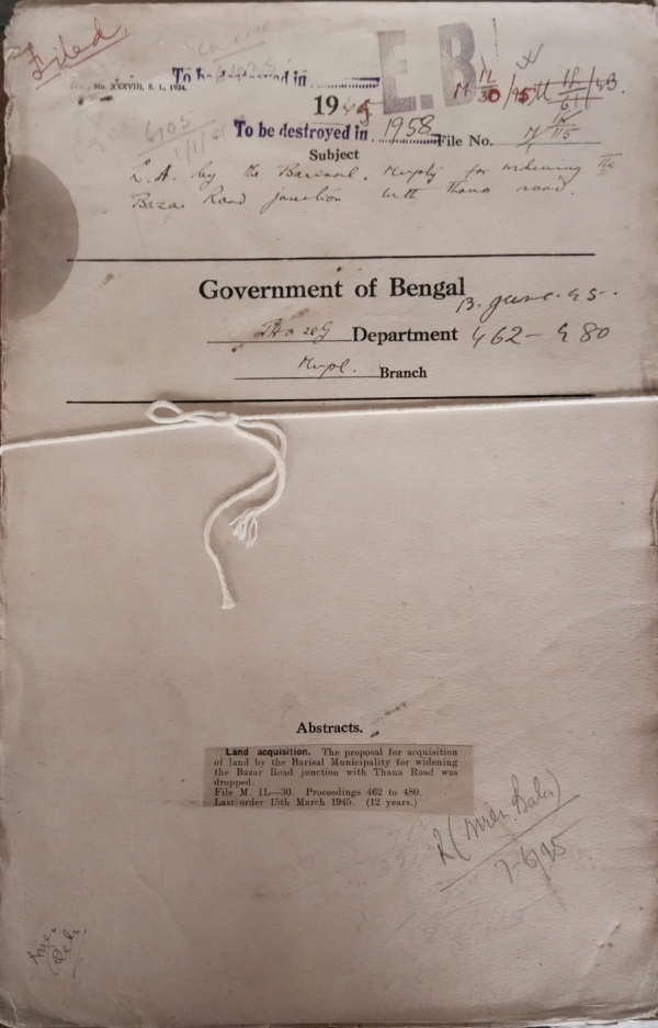 | Rack No. 13, Bundle No. 29, Sl No. 1998 Proposed writing off at the amount of Rs.2.577/12/4 at Mymensingh Municipality defalcated by the late Asset; Account of the municipality. | Rack No. 13, Bundle No. 29, Sl No. 1999 L.A.by the Chandpur municipality for extent of the Burial ground of the North section of the Chandpur municipality. | Rack No. 13, Bundle No. 29, Sl No. 2000 Revision of assessment of the Rangpur Municipality. | Rack No. 13, Bundle No. 29, Sl No. 2001 J.A by the Rarisal Municipality for widening the Bazar Road Junction with thana road. | Rack No. 13, Bundle No. 29, Sl No. 2002 Notes of inspection of the Tangail Municipality, by A.D.M, Mymensingh. | Rack No. 13, Bundle No. 29, Sl No. 2003 Notes of Inspection of the Netrokona Municipality. | Rack No. 13, Bundle No. 29, Sl No. 2004 Adoption of Rule 5A of the P.F. Rules by the Kishorganj Municipality. |