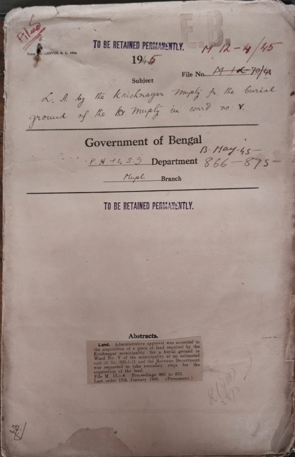 L.A. by the Krishnagar Municipality for the burial ground of the Municipality in ward No. V.
